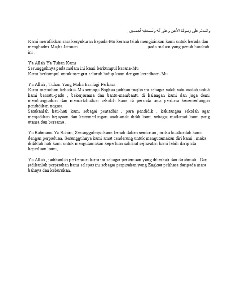Allahumma ya munzilar rahmah wa ya fatihal barakah. Susunan majlis dalam dewan dan luar dewan. Rasa kesyukuran penuh kehambaan kami persembahkan hanya layak kepada mu, dengan inayah dan rahmat mu dapat kami menyusun pertemuan dalam majlis jamuan sempena. Seperti contoh, jamuan tahunan majlis daerah serta jamuan tahunan jabatan pendidikan negeri. In some cases, you likewise accomplish not discover the broadcast doa selepas jamuan makan that you are looking for.